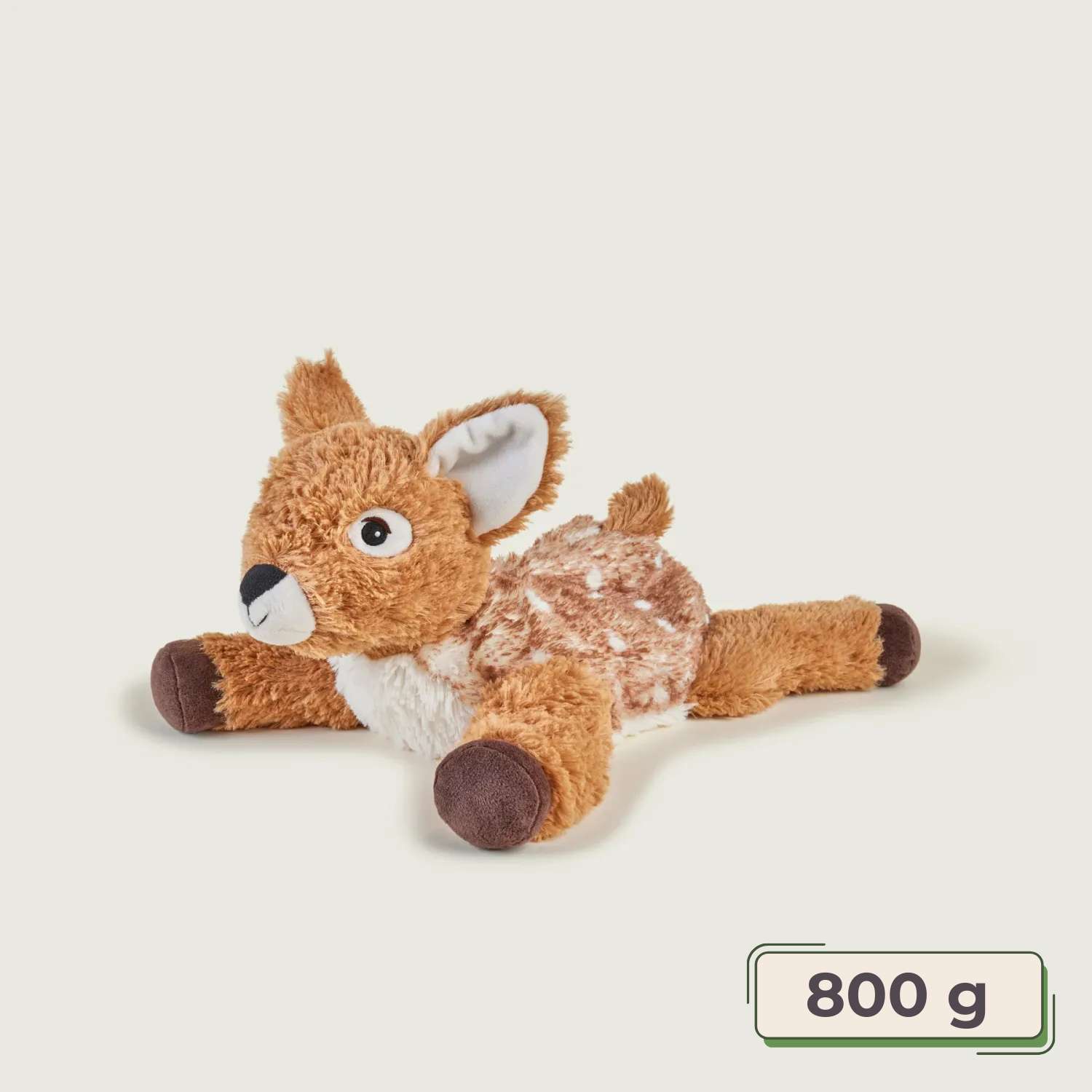 Dejlig tyngde: Med en vægt på cirka 800g har Warmies® liggende rådyr en behagelig tyngde, der giver ekstra beroligelse og hjælper med at skabe en følelse af tryghed. Denne tyngde adskiller sig fra almindelige bamser og gør den ideel til sansemotorisk stimulering.